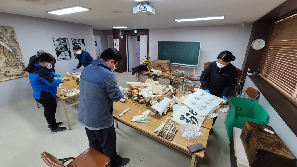 모산학술재단과 모산학술연구소는 당초 봉고정사 유품의 목록작업을 계획했으나 한국국학진흥원의 국학자료목록 사업에 동참하기로 결정하였다. 따라서 한국국학진흥원 권진호 박사(국학기반본부장), 연구원 김주부 박사 및 학예사들이 12월 11일(금), 재단을 내방하여 유품을 검토하고 분류하였으며 봉고정사 유품(고서 16책, 고문서 1,511점, 서화 167점, 기타 20점)과 모산 선생 소장품(고서 161책, 고문서 50점, 서화 1점)을 기탁하였다.